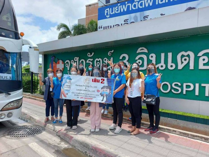 ซึ่งทางบริษัท เรนโบว์ ปริ้นติ้ง จำกัด และบริษัท ลีดเดอร์ ลาเบล จำกัด จัดให้พนักงานได้รับการฉีดวัคซีนทุกคน ครบ 100% โดสที่ 2 เมื่อวันที่ 31 กรกฎาคม 2564